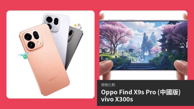 OPPO Find X9s Pro(中國版)與 vivo X300s 兩款旗艦手機均搭載 MediaTek 天璣 9500 處理器,即將於 2026 年相繼登場,前者預計 4 月上市,後者則稍早於 3 月底公布。OPPO Find X9s Pro 定位為緊湊型旗艦,強調輕薄設計與強大電池;vivo X300s 則主打大屏影像體驗。這篇文章將透過規格對比與詳細分析,幫助讀者了解兩者在屏幕、效能、攝影及連接性等方面的差異,找出最適合個人需求的選擇。