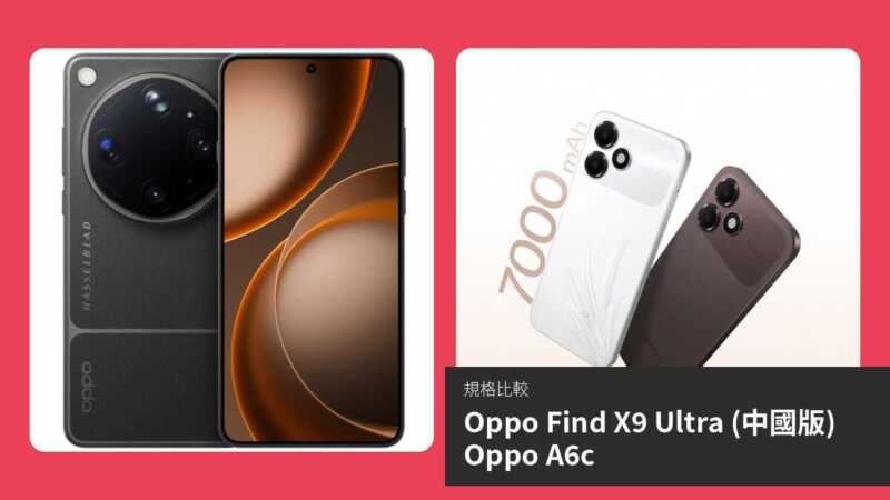 【手機比較】Oppo Find X9 Ultra (中國版) 與 Oppo A6c:規格表、效能、攝影功能