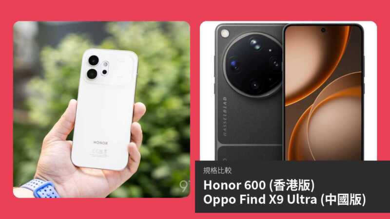 【手機比較】Honor 600 (香港版) 與 Oppo Find X9 Ultra (中國版):規格表、效能、攝影功能