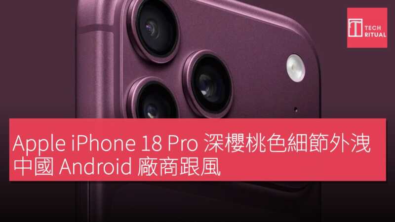 中國洩密者近日分享更多 Dark Cherry 配色資訊,此色將成為英雄色。雖然 Apple 尚未確認正式名稱(Dark Cherry 僅為暫定),但據描述,這款顏色融合酒紅、咖啡色及深紫色元素,呈現獨特視覺效果,預計在智能手機市場中罕見。惟此獨特性或難持久,中國 Android 廠商據傳已開始跟進複製,類似 iPhone 17 Pro 及 iPhone 17 Pro Max 推出 Cosmic Orange 後的情形。