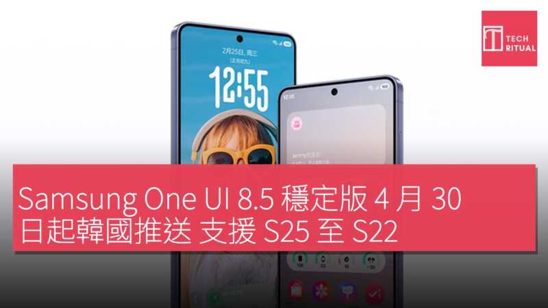 Samsung最新 One UI 8.5 穩定版更新推送時間表與適配機型已公布。該版本將於 2026 年 4 月 30 日起在韓國開始推送,首批針對 S25 系列,其後預計於 5 月初陸續擴展至美國等海外市場。S26 系列已預裝 One UI 8.5 出廠,因此實際首批升級機型為 S25 系列。