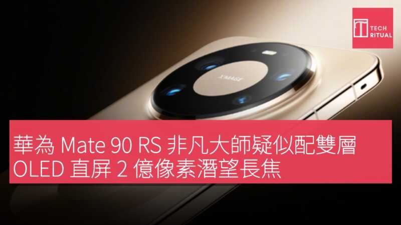 華為 Mate 90 RS 非凡大師疑似配雙層 OLED 直屏 2 億像素潛望長焦