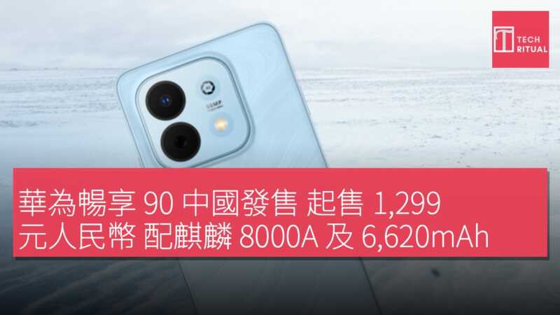 華為暢享 90 正式開售,主打長續航、高耐用及鴻蒙安全三大賣點,以 1299 元人民幣起售(約 HK$1414),切入千元機市場,並與同系列 Plus 及 Pro Max 版形成完整價格梯度。