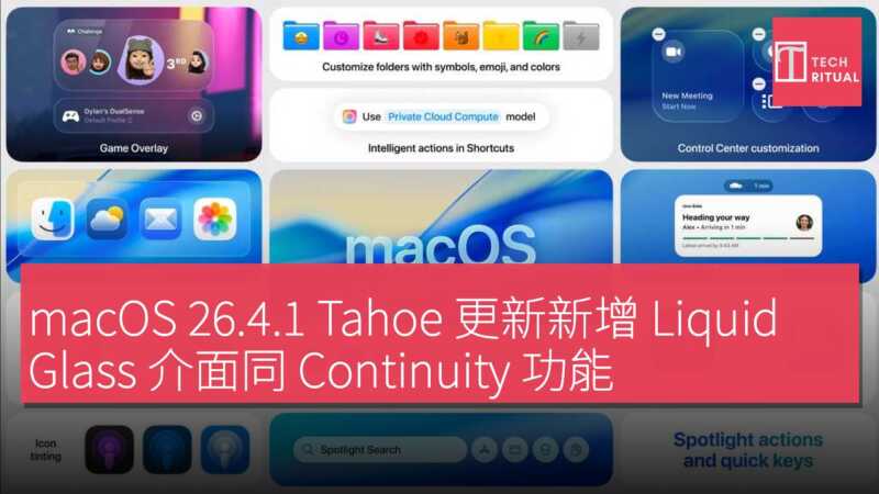macOS 26.4.1 Tahoe 更新新增 Liquid Glass 介面同 Continuity 功能