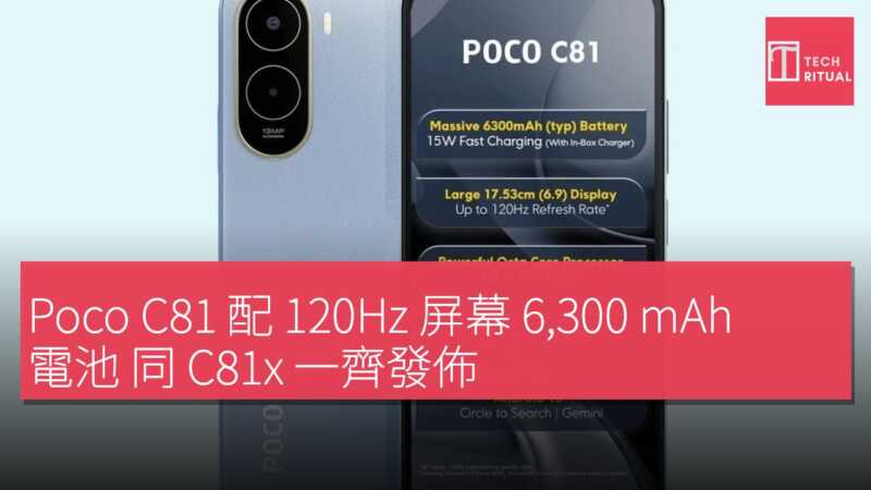 Poco C81x 定價為 US$105,約 HK$819;Poco C81 為 US$115,約 HK$897。兩機將於 4 月 27 日起在印度 Flipkart 平台開售。