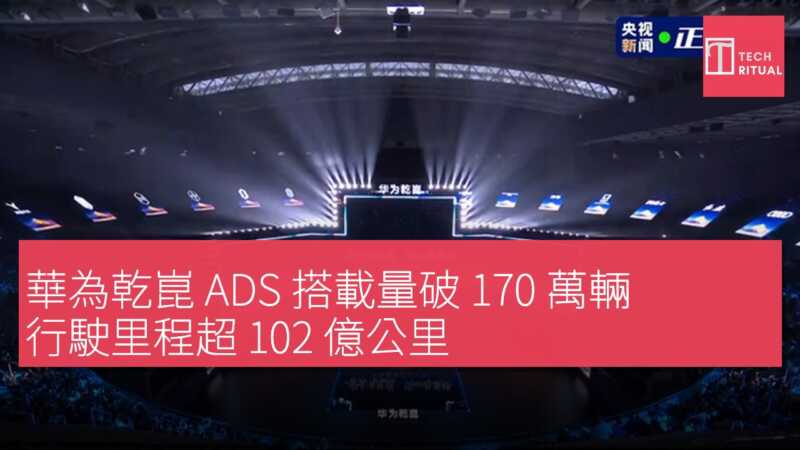 華為乾崑 ADS 搭載量破 170 萬輛 行駛里程超 102 億公里