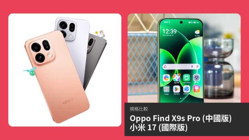 【手機比較】Oppo Find X9s Pro (中國版) 與 小米 17 (國際版):規格表、效能、攝影功能