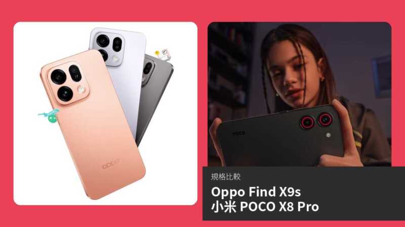 小米 POCO X8 Pro 則以超高屏幕亮度、更快 100W 充電、IP68 防水和遊戲優化勝出,性價比高,適合戶外使用者和遊戲玩家。兩機各有千秋:若重視攝影與未來連接,選 OPPO Find X9s;若偏好顯示亮度、快充與耐用,POCO X8 Pro 更佳。最終選擇視個人需求而定。