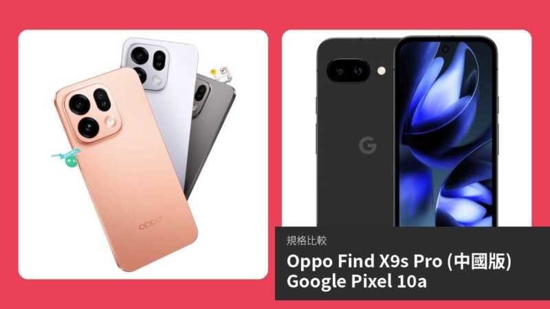 【手機比較】Oppo Find X9s Pro (中國版) 與 Google Pixel 10a:規格表、效能、攝影功能