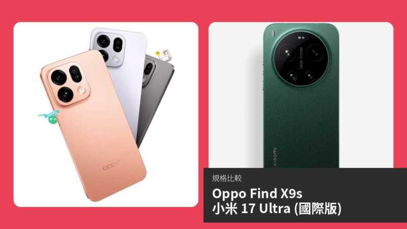 OPPO Find X9s 則以更大電池、更輕薄設計、均衡三鏡頭及 Bluetooth 6.1 取勝,ColorOS 優化出色,適合注重續航、日常多工及輕便性的用戶。整體而言,小米 17 Ultra 規格更強悍,作為旗艦更全面;惟 OPPO 在電池及便攜性有優勢,選擇視個人需求而定。