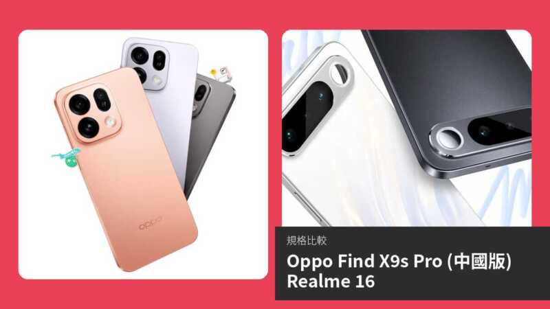 | 項目 | OPPO Find X9s Pro (中國版) | Realme 16 |