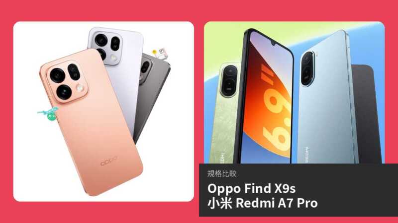 | 項目 | OPPO Find X9s | 小米 Redmi A7 Pro |
