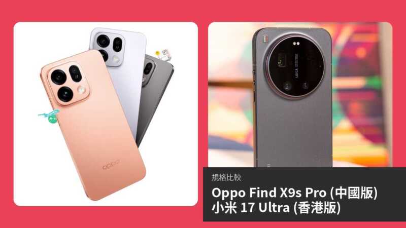 | 項目 | OPPO Find X9s Pro (中國版) | 小米 17 Ultra (香港版) |