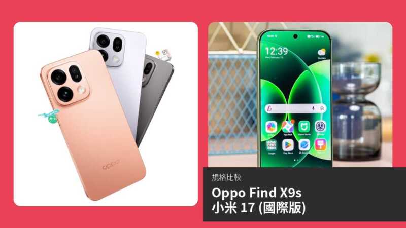 整體而言,小米 17 規格更全面、旗艦感更強,適合高端需求;OPPO Find X9s 性價比高,續航優勢明顯。選擇視個人偏好:效能攝影選小米,續航屏幕選 OPPO。