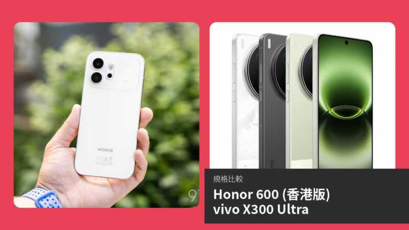 【手機比較】Honor 600 (香港版) 與 vivo X300 Ultra:規格表、效能、攝影功能