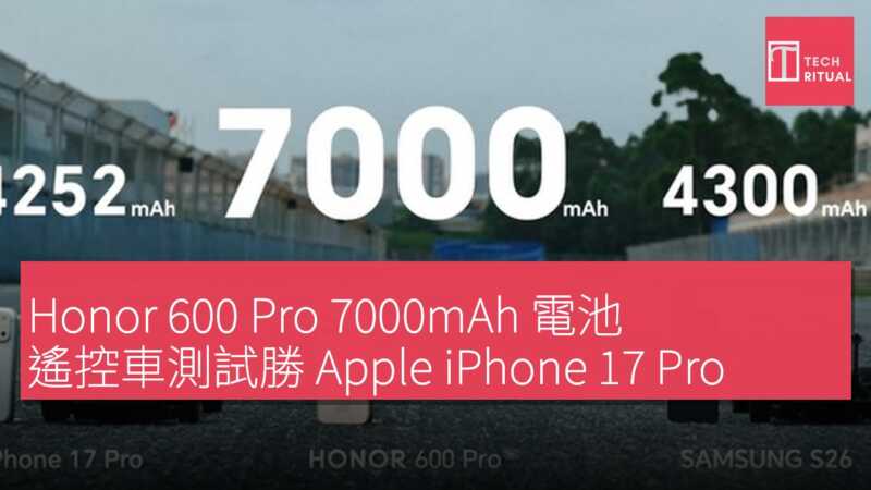 Honor 600 系列手機已正式發佈,並登陸歐洲市場,不過其電池配置因地區而異。亞洲版本配備 7000mAh 矽碳電池,歐洲版本則為 6400mAh 電池。發佈之際,Honor 進行了一項特別的電池對比測試,將 Honor 600 Pro 的 7000mAh 電池、iPhone 17 Pro 的 4252mAh 電池,以及 Samsung S26 的 4300mAh 電池取出,各自為一台微型遙控車供電,並在相同賽道進行耐久性比賽。