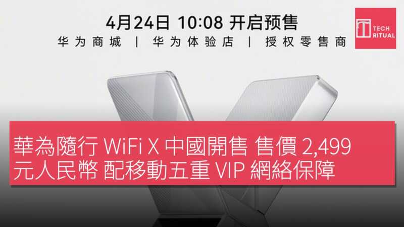 華為隨行 WiFi X 開啟預售,售價 2499 元人民幣,約 HK$2719。它配備強大硬件配置,並提供移動五重 VIP 網絡保障,適用於遠郊戶外、發布會或展會等擁擠場景,確保穩定高速連接。