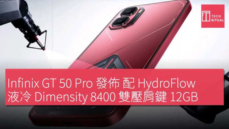 Infinix 在推出專為遊戲玩家設計的 GT 30 Pro 近一年後,推出後繼機型 GT 50 Pro。新機採用優化設計,提升散熱表現並擴大電池容量,延續遊戲手機傳統,機背配備動態 RGB 燈效陣列,並整合全新 HydroFlow 液冷系統,覆蓋 6,437 mm² 面積,確保優異熱管理效能。 GT 50 Pro 搭載 MediaTek Dimensity 8400 處理器,採用全大核 CPU 架構、升級 GPU 及強化 NPU 效能,搭配 12GB LPDDR5X RAM 及最高 512GB