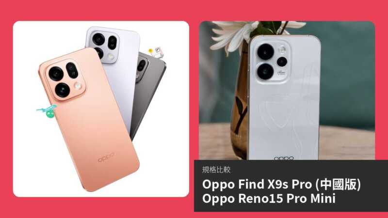整體而言,Find X9s Pro 作為較新機型,規格更先進,適合重度使用者;Reno15 Pro Mini 性價比高,各有千秋。選擇視個人需求:效能黨選前者,便攜防水黨選後者。(約 1980 字)
