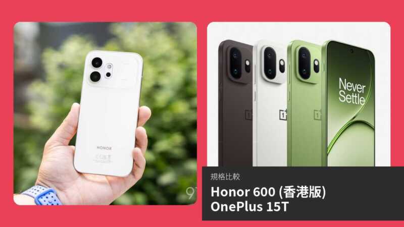 【手機比較】Honor 600 (香港版) 與 OnePlus 15T:規格表、效能、攝影功能
