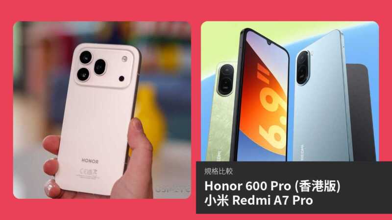 | 項目 | Honor 600 Pro (香港版) | 小米 Redmi A7 Pro |