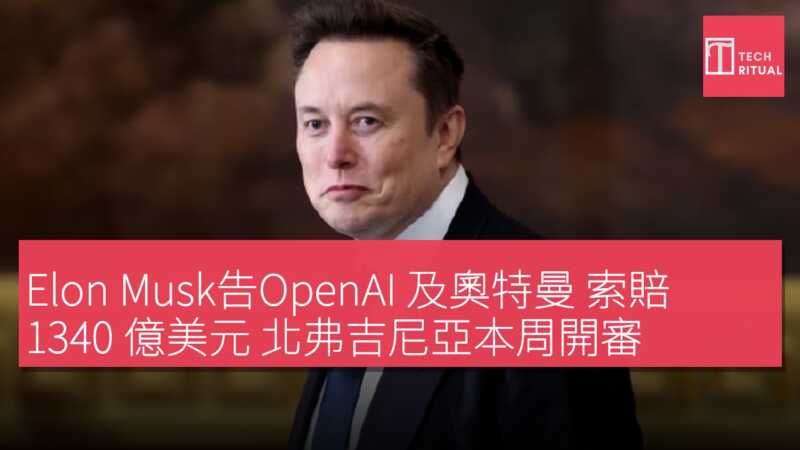 Elon Musk告OpenAI 及奧特曼 索賠 1340 億美元 北弗吉尼亞本周開審