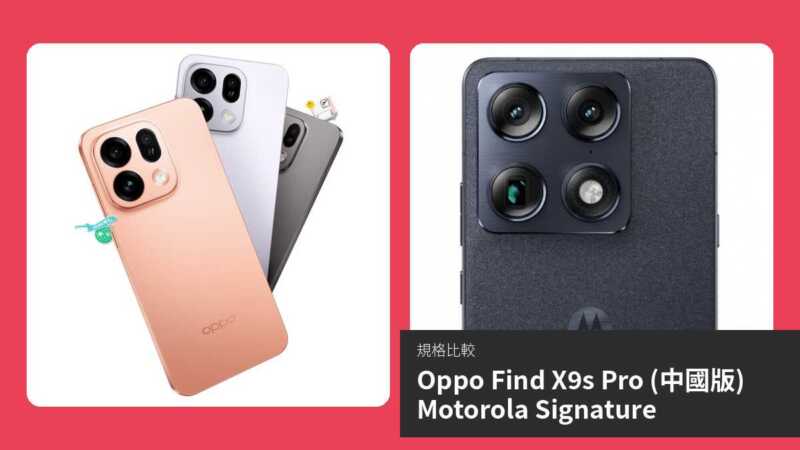 | 項目 | OPPO Find X9s Pro (中國版) | Motorola Signature |