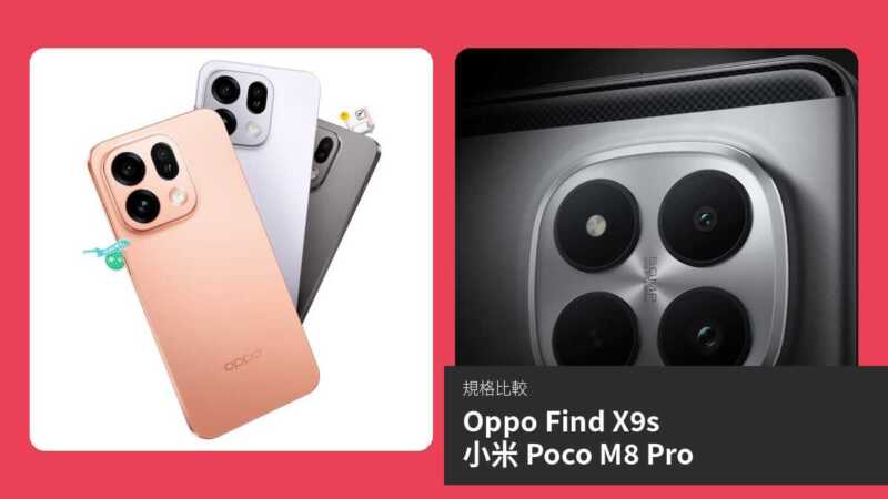 【手機比較】Oppo Find X9s 與 小米 Poco M8 Pro:規格表、效能、攝影功能