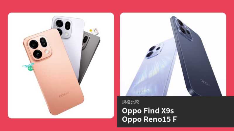 【手機比較】Oppo Find X9s 與 Oppo Reno15 F:規格表、效能、攝影功能
