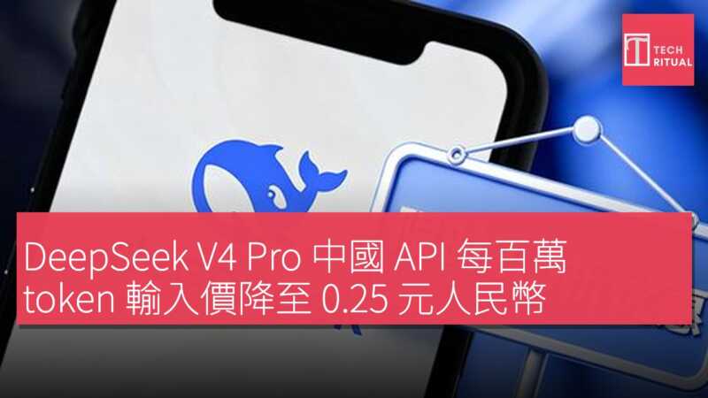 DeepSeek V4 Pro 中國 API 每百萬 token 輸入價降至 0.25 元人民幣