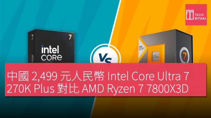 中國 2,499 元人民幣 Intel Core Ultra 7 270K Plus 對比 AMD Ryzen 7 7800X3D 遊戲落後逾 10%