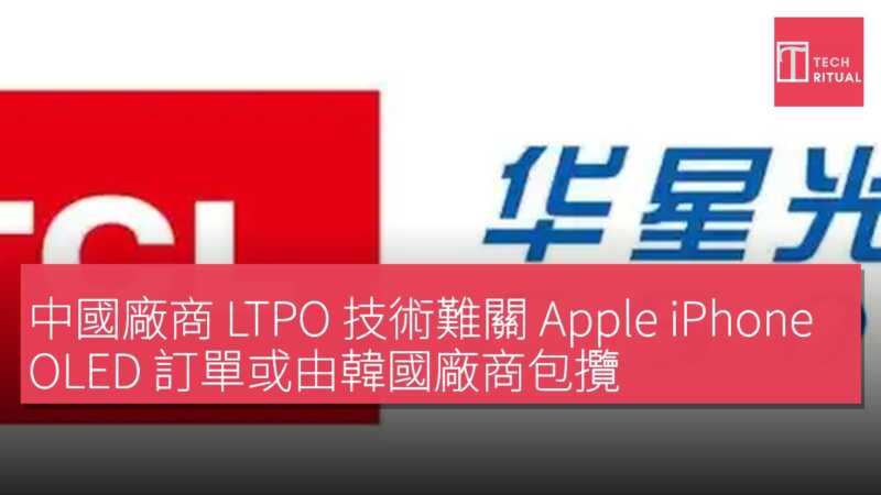 中國廠商 LTPO 技術難關 Apple iPhone OLED 訂單或由韓國廠商包攬
