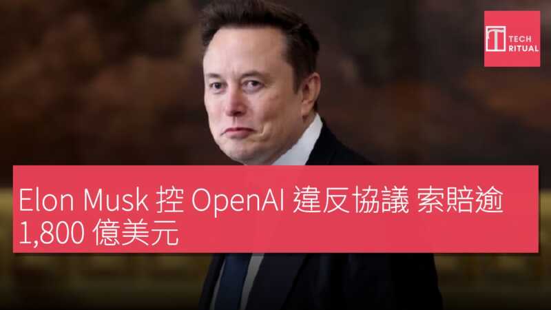 Elon Musk 控 OpenAI 違反協議 索賠逾 1,800 億美元