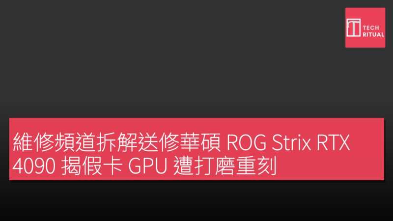 YouTube 維修頻道 Northwest Repair 在最新影片中揭露一張送修的華碩 ROG Strix RTX 4090 顯示卡,經證實為高度仿製的假卡。這張假卡的 GPU 核心及所有晶片均經打磨並雷射重新刻字,偽造工藝之精細令資深維修師直呼「這是我見過最完美的騙局」。 Northwest Repair 明確指出,此類假貨水準遠非個人或專業維修工所能達成,更可能出自那些將遊戲顯示卡改裝為 AI 運算卡的地下工廠之手。