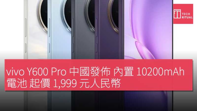 價格方面,vivo Y600 Pro 起售價 1999 元人民幣,約 HK$2174;12GB+512GB 頂配版售價 2899 元人民幣,約 HK$3152(中國)。
