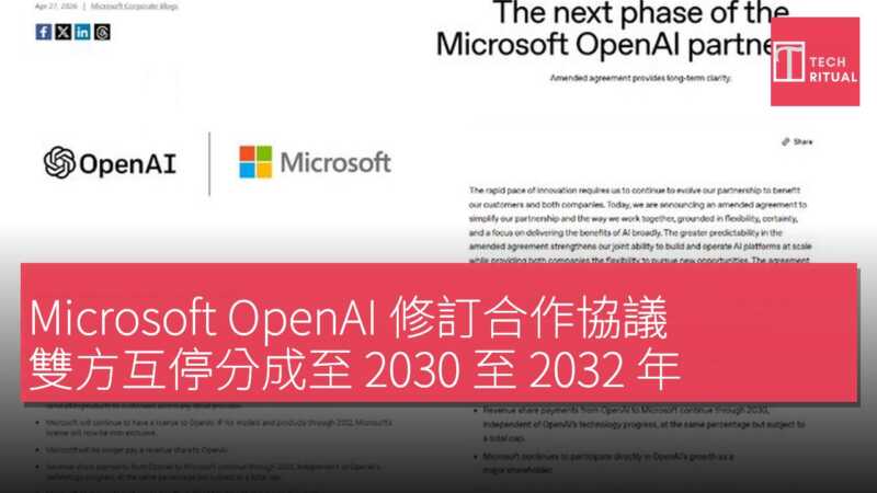 曾經被視為 AI 時代「親密拍檔」的Microsoft與 OpenAI,終於走到互相放手、各自自由的時刻。北京時間周一晚間,Microsoft與 OpenAI 同時發佈聲明宣布「合作為進入下一階段」。聲明表示,Microsoft對 OpenAI 模型與產品的知識產權許可將變為非獨家,有效期持續至 2032 年不變。Microsoft將不再向 OpenAI 支付收入分成。OpenAI 將繼續向Microsoft支付收入分成,直至 2030 年,分成比例不變但設有未透露的總金額上限,同時不受技術進展影響。