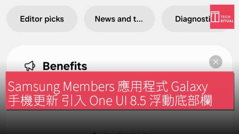 Samsung 為 Galaxy 智能手機的 Samsung Members 應用程式發佈更新,版本號為 5.8.00.10,僅限於運行 One UI 8.5(Android 16 QPR2)的裝置。雖然公司未提供官方更新日誌,但此次更新帶來重大設計變革:引入浮動底部導航欄。