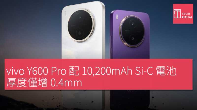 憑藉巨量電池,vivo 表示 Y600 Pro 輕鬆可使用超過 24 小時,通話時間達 47 小時、影片播放 28 小時或導航 16 小時。經優化的電池健康管理,可在 6 年(1,600 次充放電循環)後保留 80% 容量。Y600 Pro 提供黑色、藍色、金色及紫色款式,8GB RAM / 128GB 基礎版售價 1,999 元人民幣,約 HK$2,179;頂配 12GB RAM / 512GB 版售 2,899 元人民幣,約 HK$3,158。