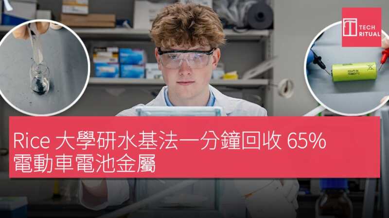 Rice 大學研水基法一分鐘回收 65% 電動車電池金屬