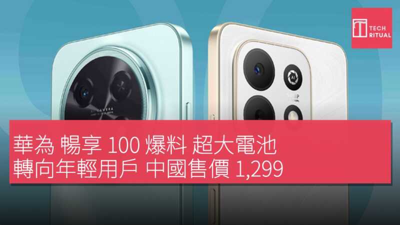 華為 暢享 100 爆料 超大電池 轉向年輕用戶 中國售價 1,299 元人民幣起