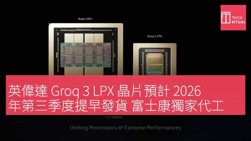 英偉達 Groq 3 LPX 晶片預計在 2026 年第三季度提前發佈。最初行業預測今年 Groq 3 LPX 出貨量有限,但目前供應鏈報告顯示,LPX 機架所使用的 LP30 和 LP35 晶片今年出貨量將達到 150 萬顆,到 2027 年將進一步增長至 250 萬顆。報告指出,富士康是 Groq 3 LPX 計算託盤的獨家供應商,也是 LPX 機櫃組件的關鍵供應商。