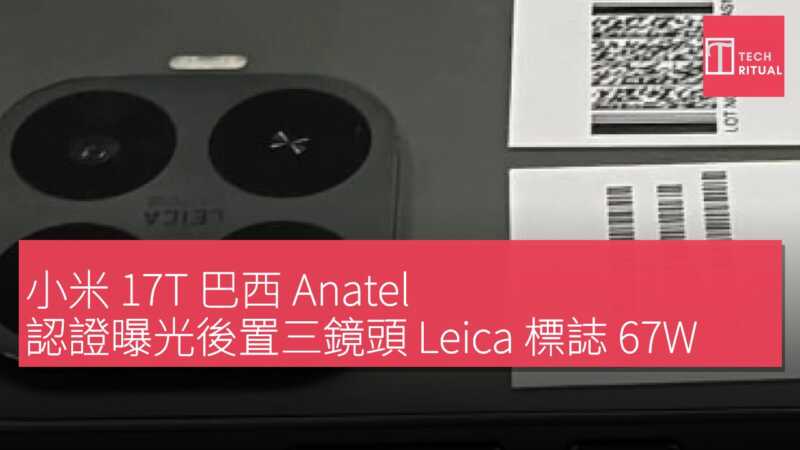 小米 Xiaomi 據傳將於 5 月發佈 17T 系列智能手機,而該系列標準版小米 Xiaomi 17T 的首張實機圖片已透過巴西 Anatel 認證機構的上市資訊曝光。圖片顯示手機背面配備 67W 充電器,設計大致延續小米 Xiaomi 15T 風格,但相機模組有所調整。背部擁有三顆鏡頭,第四個開口為裝飾模組,徠卡 Leica 標誌位於中央,LED 閃光燈移至相機凸起外側。