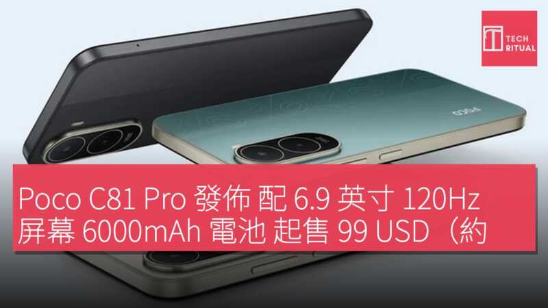 小米 Xiaomi 向全球市場發佈新款手機 Poco C81 Pro,這款機型主打大尺寸屏幕與長效續航,適合日常使用。小米 Poco C81 Pro 配備 6.9 英寸 LCD 顯示屏,分辨率為 1600×720,刷新率最高達 120Hz,峰值亮度 650 尼特。性能方面,搭載紫光展銳 T7250 處理器,RAM 為 4GB,儲存空間最高 256GB,足以應付社交媒體瀏覽、影片觀看及輕度遊戲。