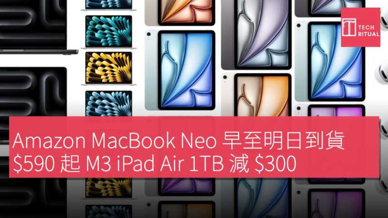 Amazon MacBook Neo 早至明日到貨 $590 起 M3 iPad Air 1TB 減 $300