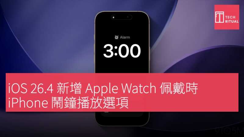Apple 於 iOS 26.4 更新中,為 Apple Music、Apple Podcasts 等應用程式加入多項新功能,同時提供更多 iPhone 自訂選項。Apple 亦新增專為 Apple Watch 用戶設計的鬧鐘功能,讓 iPhone 在用戶戴著 Apple Watch 入睡時,仍能播放鬧鐘聲音。 Apple Watch 的鬧鐘一直是其熱門功能之一,早於睡眠追蹤及睡眠分數功能推出前,已吸引不少用戶在睡前佩戴。