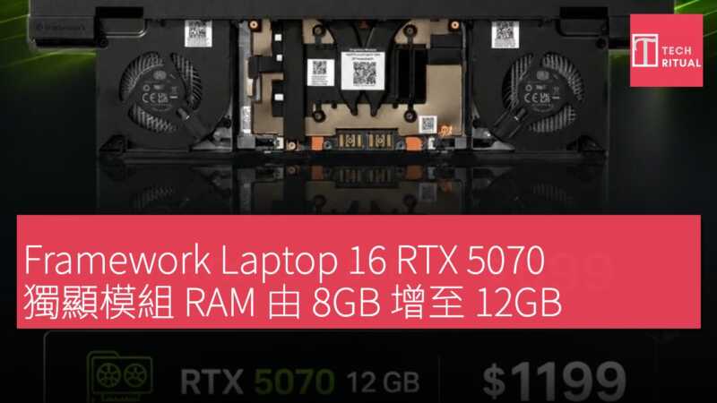 英偉達今日正式發佈 RTX 5070 Laptop GPU 12GB GDDR7 版本,Framework 亦為自家 16 英寸模組化筆電推出 RTX 5070 12GB 獨立顯示卡升級模組。該模組將顯示存量由 8GB 增至 12GB,但定價由 US$699(約 HK$5460)直接升至 US$1199(約 HK$9352),漲幅高達 72%。全球顯示存量供應持續緊絀,存儲晶片價格一路上漲,此問題在 Framework 這款新顯示卡模組上體現得淋漓盡致。