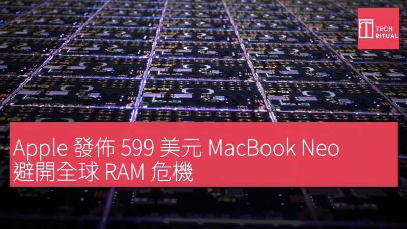 全球 RAM 短缺導致 PC 廠商價格上漲,Apple 憑藉 M 系列晶片系統單晶片(SoC)架構及統一記憶體設計,推出售價 US$599(約 HK$4,672)的 MacBook Neo,維持高效能表現。Macworld 指出,此舉突顯 Apple 在供應鏈危機下的優勢,對比競爭對手如 Microsoft 和 Meta 需大幅調漲售價。