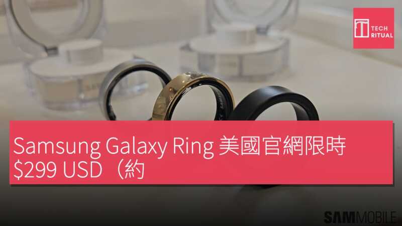Samsung Galaxy Ring 美國官網限時 $299 USD(約 HK$2,332)無需以舊換新減 $100